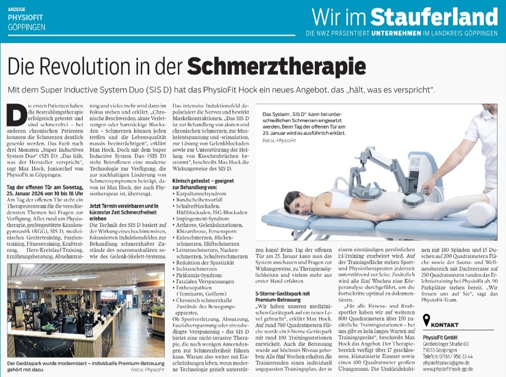 Chronische Beschwerden, akute Verletzungen oder hartnäckige Blockaden – Schmerzen können jeden treffen und die Lebensqualität massiv beeinträchtigen. Doch mit dem Super Inductive System Duo (SIS D) steht Betroffenen eine moderne Technologie zur Verfügung, die zur nachhaltigen Linderung von Schmerzsymptomen beiträgt.